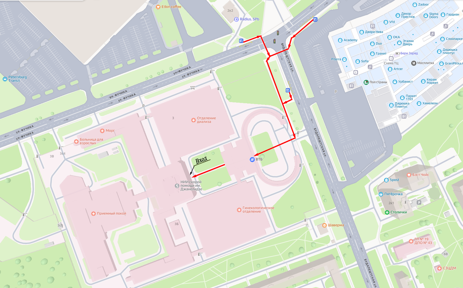 КПП приемное отделение, въезд на пандус (Будапештская, д. 3) – круглосуточно.